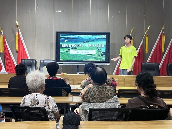 為讓更多村民透徹了解農藥殘留的潛在危害,實踐團成員們帶著精心設計的宣傳單,先后走進徐州市豐縣大沙河鎮二壩村村委會、徐州市鼓樓區蘇電社區和徐州市新沂市北溝街道開展“耕耘有機生活,智防農殘危害”主題宣講。團隊成員結合當地的果蔬種植案例,用通俗易懂的方言土語,詳細講解了農藥殘留對人體健康的損害和對土壤水源的污染等內容,向村民普及有機種植知識,讓村民們更輕松地理解有機農業的原理、優勢以及其在環境保護和經濟發展中所發揮的重要作用。