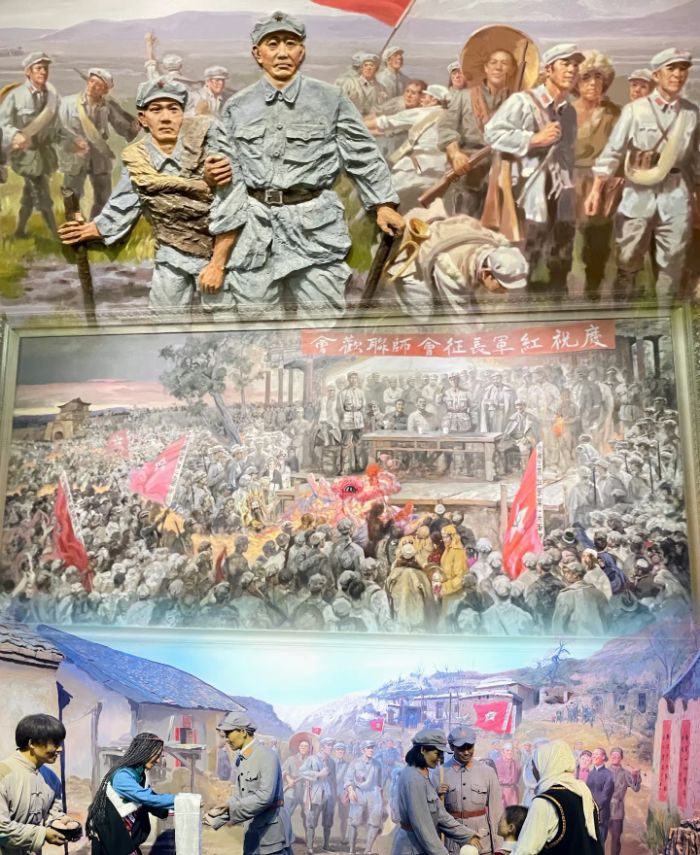 圖為會師紀念館內長征路相關壁畫 李娜攝