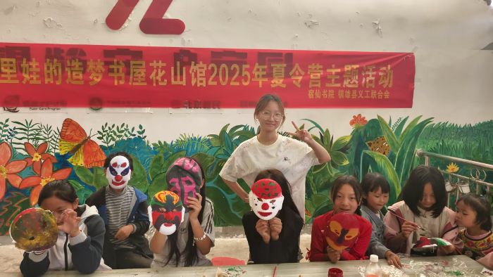 圖為志愿者給孩子們上臉譜文化課。楊甲啟 供圖。