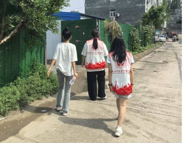 圖為隊(duì)員深入居民院落交流 王雨衡供圖