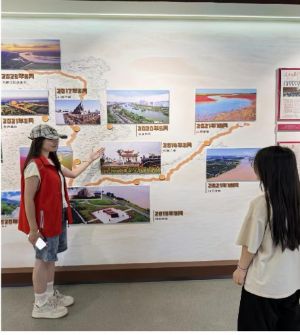 遇到國際友人參觀時,隊員們切換至英語講解模式。李肖涵在介紹“治河新篇”展區(qū)時,清晰列舉新中國成立后黃河治理的各項數(shù)據(jù),通過對比圖表向外國游客展示黃河流域生態(tài)環(huán)境的改善成果,流暢的表達和專業(yè)的講解贏得對方點頭稱贊。張笑然則主動為國際友人分發(fā)英文版黃河文化簡介手冊,補充講解展陳中蘊含的民俗故事,讓黃河文化以更易理解的方式傳播。