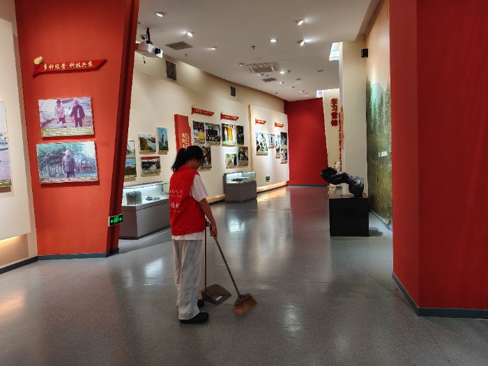 進(jìn)入展館內(nèi)部,志愿者們迅速投入志愿服務(wù)工作。身著紅色志愿馬甲的志愿者,手持掃帚、抹布,認(rèn)真清掃地面、擦拭展柜與展品。在清掃過程中,他們專注細(xì)致,不放過任何一處灰塵;擦拭展品時(shí),輕緩小心,守護(hù)珍貴史料。以實(shí)際行動(dòng)踐行雷鋒精神,讓展館環(huán)境更加整潔有序,為參觀者營造良好氛圍 。