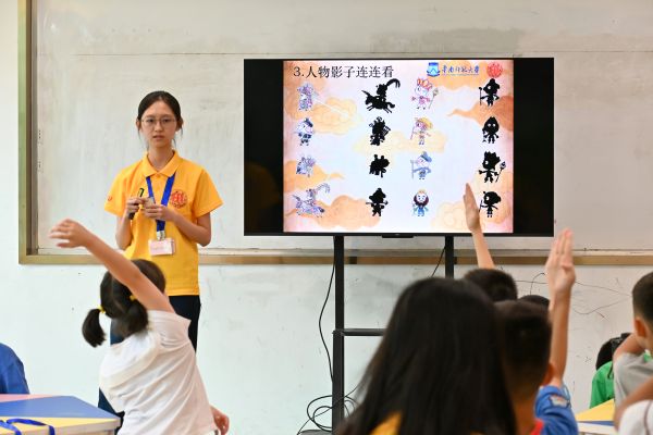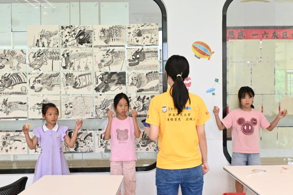 面對(duì)小朋友們“非遺是什么”的好奇詢問,實(shí)踐團(tuán)成員精心組織了國(guó)家非遺科普課程,通過牛郎織女傳說、古琴藝術(shù)和龍舞表演等生動(dòng)案例,帶領(lǐng)孩子們認(rèn)識(shí)非遺。課堂上,孩子們積極互動(dòng)、踴躍搶答,在實(shí)踐團(tuán)成員寓教于樂的方式中領(lǐng)略非遺的魅力。