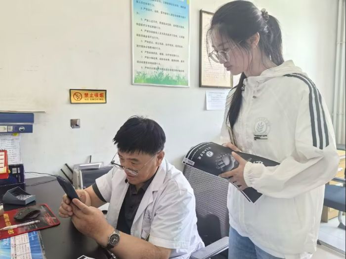 在鄉鎮衛生院內,實踐團成員結合專業知識,向醫護人員與就診患者系統介紹了人工智能在健康咨詢及慢性病管理領域的創新應用。團隊現場演示的健康咨詢小程序,操作簡便直觀——用戶在手機端輸入癥狀描述或藥品名稱后,AI聊天機器人便會即時推送涵蓋常見疾病預防知識、用藥禁忌與注意事項等內容的權威信息,為基層群眾的日常健康保健提供了科學參考。