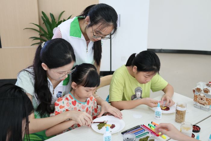 實踐團(tuán)還組織開展“五谷繪豐年”創(chuàng)意實踐活動,帶領(lǐng)兒童谷物為原料,結(jié)合繪畫技法創(chuàng)作藝術(shù)畫作,將傳統(tǒng)農(nóng)業(yè)元素與美育有機(jī)融合。指尖勾勒里,讀懂稻菽“多”般值;心田萌動處,農(nóng)耕創(chuàng)意“種”得深。