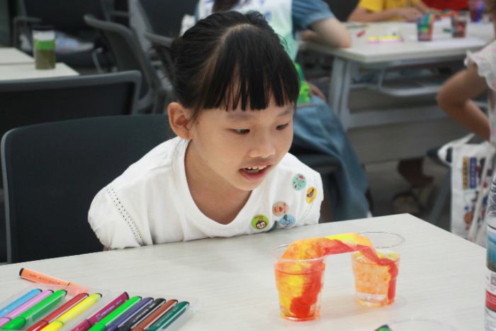 圖 13 小朋友觀察彩虹橋?qū)嶒?/p>