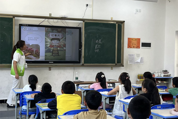 7月8日上午,活動正式啟動。首堂“垃圾分類我能行”課程通過互動游戲與實物演示,生動形象地幫助同學們掌握了可回收物、廚余垃圾、有害垃圾及其他垃圾的分類方法。隨后兩天的“普潤鄉土”普通話課程,融合繞口令、情景對話等多種形式,切實提升了學生的口語表達能力與發音準確性;“探秘高原動植物”課程則借助圖片、模型和短視頻,向學生普及了當地珍稀動植物及其保護知識。每節課均采用貼紙獎勵機制,同學們踴躍參與、積極搶答,所得貼紙可在活動最后一天兌換文具、玩偶等紀念禮物。