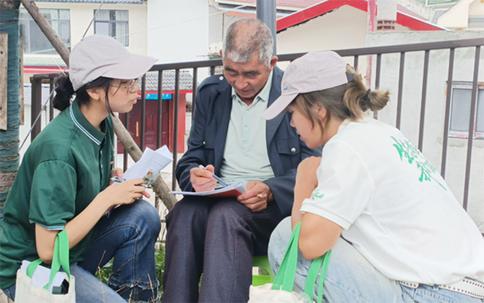 每日課程結束后,實踐團成員于下午走進得妥鎮周邊村莊,通過發放宣傳資料和面對面講解,向村民推廣普通話日常用語,傳播高原生態保護常識。累計走訪農戶20余戶,發放宣傳材料100余份,進一步擴大了活動影響范圍。