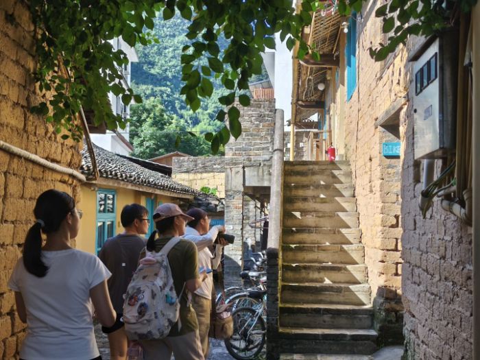 圖為格格樹民宿工作人員帶領(lǐng)團隊參觀。 梁錦婷 供圖