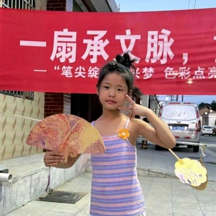 實踐期間,實踐團成員針對周一村文化氛圍活力低下的現(xiàn)狀,精心策劃并成功舉辦了一場別開生面的漆扇制作活動。漆扇,這一承載著中國傳統(tǒng)文化的藝術(shù)品,成為了連接實踐團與周一村村民與兒童的橋梁。在實踐團成員們的耐心指導(dǎo)下,兒童不僅學(xué)習(xí)了漆扇制作的基本技巧,還充分發(fā)揮自己的創(chuàng)意與想象力,制作出了一扇扇獨一無二兼具傳統(tǒng)韻味和現(xiàn)代審美的漆扇作品。