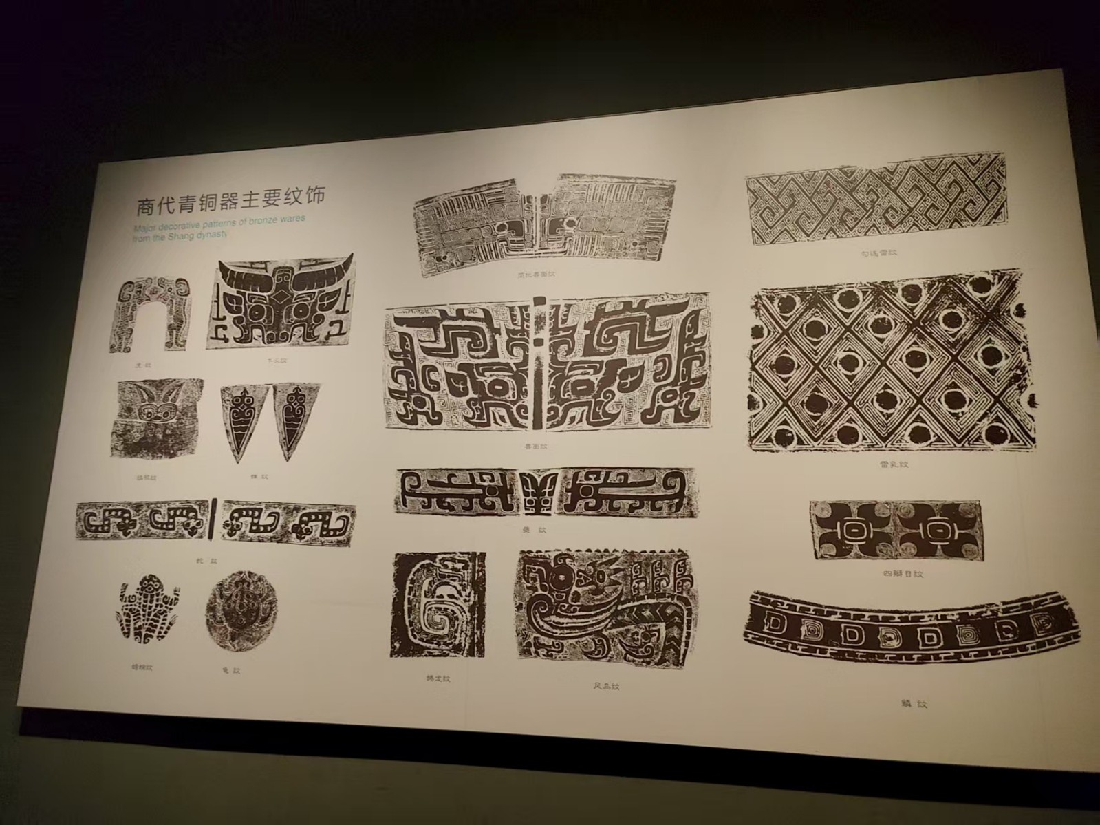 圖一,拍攝于河南博物館展廳4中原立國——夏商時期,圖中為現代學者根據出土文物復現的商代青銅器主要紋飾