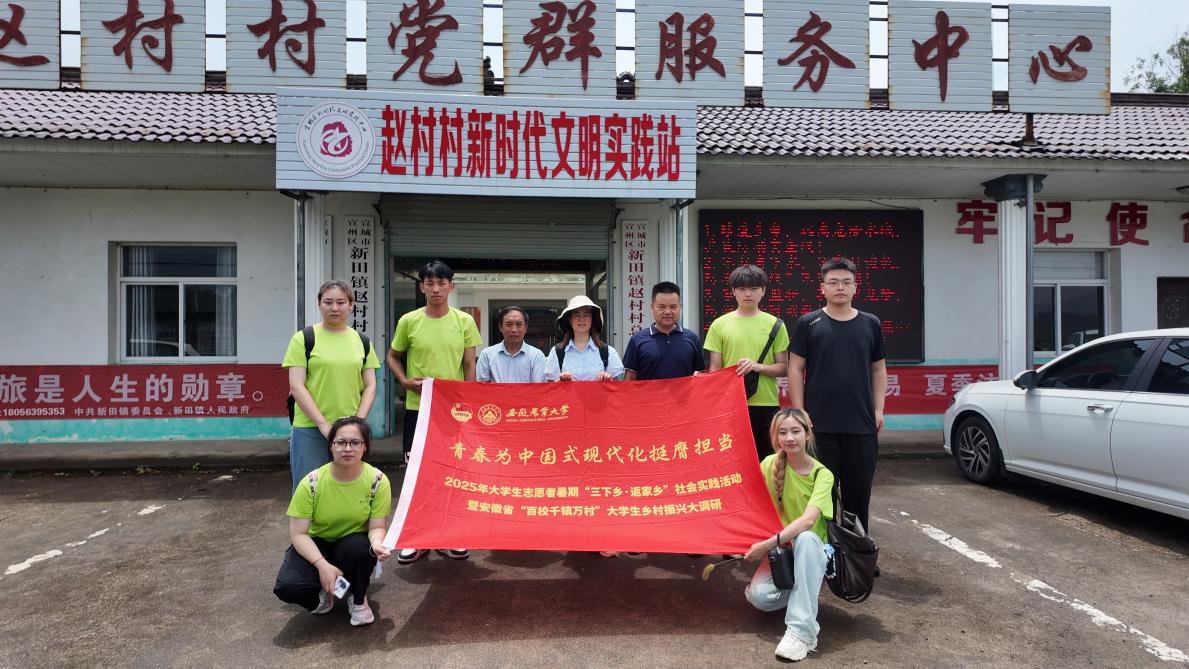 調(diào)研結(jié)束后,團隊在趙村村黨群服務(wù)中心門前,與當?shù)馗刹亢嫌傲裟睿涗浵逻@段探索鄉(xiāng)村振興的經(jīng)歷。