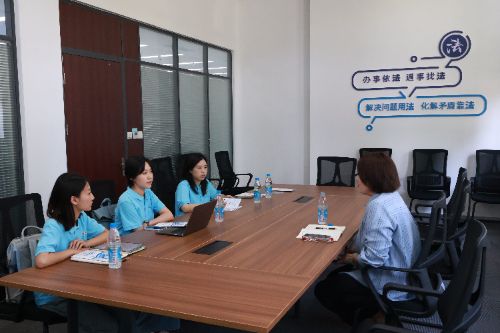 調(diào)研團還走進蘇州市司法局和蘇州市中級人民法院,構(gòu)建對蘇州調(diào)解工作的宏觀理解。在市司法局,調(diào)研團與法治促進處孫處長圍繞“蘇州市社會風(fēng)險治理中的調(diào)解機制”這一核心議題進行深入座談,雙方就調(diào)解工作現(xiàn)狀、特色模式創(chuàng)新、大調(diào)解體系構(gòu)建、多元調(diào)解融合發(fā)展等關(guān)鍵問題展開了熱烈而富有成效的探討。走進蘇州市中級人民法院立案訴服大廳,團隊成員親身體驗了低位服務(wù)臺、盲文版互動指南、種類齊全的訴訟知識手冊等充滿人文關(guān)懷的便民舉措,感受著“立案訴服集成一體”的便捷高效。通過專題影片,中院重點展示了自主研發(fā)的“蘇州市社會治理司法指數(shù)一點通平臺”,讓青年學(xué)子們直觀而震撼地觸摸到了蘇州基層治理的科技前沿和智慧高度。